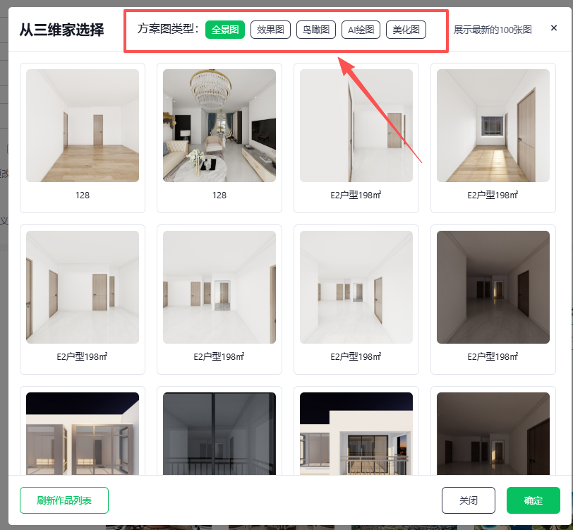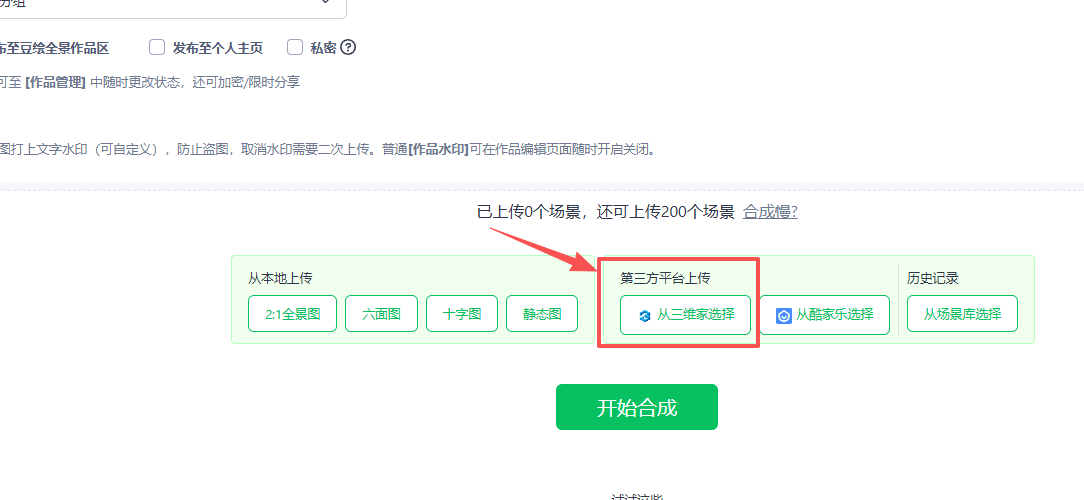 2️⃣ 点击合成页内的「从三维家选择」按钮;